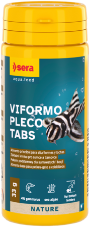 Alimento em pastilhas para Loricariidae com 4 % de gammarus e algas marinhas ricas em vitaminas sera Viformo Nature é o alimento para Loricariidae sem corantes nem conservantes de pastilhas cuidadosamente produzidas para Loricariidae e outros peixes que comem no fundo. O alimento nutritivo, de fácil digestão contém 4 % de gammarus como fonte de proteínas e nutrientes minerais de elevada qualidade. Além disso, gammarus é rico em oligoelementos e carotenoides. A receita equilibrada, enriquecida com algas marinhas ricas em vitaminas, promove o desenvolvimento saudável e a vitalidade dos peixes. Uma vez que as pastilhas que se afundam se desintegram ao se dividirem em pedaços adequados à boca dos peixes, é garantida a alimentação adaptada às necessidades dos peixes com boca mais pequena (por ex. coridoras ou cobitídeos). As partículas de alimento permanecem compactas e não turvam a água.
