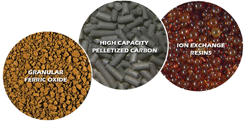 Remove fosfatos, silicatos, odores e moléculas orgânicas dissolvidas que causam a cor.