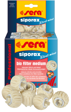 sera siporax Nitrat-minus Professional é um material filtrante de alta capacidade para a decomposição biológica de nitrato e, ao mesmo tempo, de nitrito e de amónio. Graças à bola de biopolímero adaptada ao anel de siporax, a desnitrificação é aumentada e maximizada de forma ótima. O biopolímero degradável serve de fonte de carbono para as bactérias desnitrificantes.