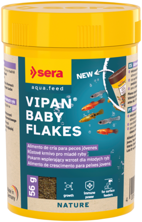 era Vipan Baby Nature é o alimento de crescimento sem corantes nem conservantes, composto por microflocos cuidadosamente processados, para todos os peixes jovens que se alimentam na superfície da água.