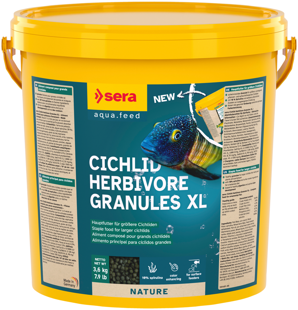granulado flutuante, para grandes ciclídeos que se alimentam principalmente de plantas e de algas